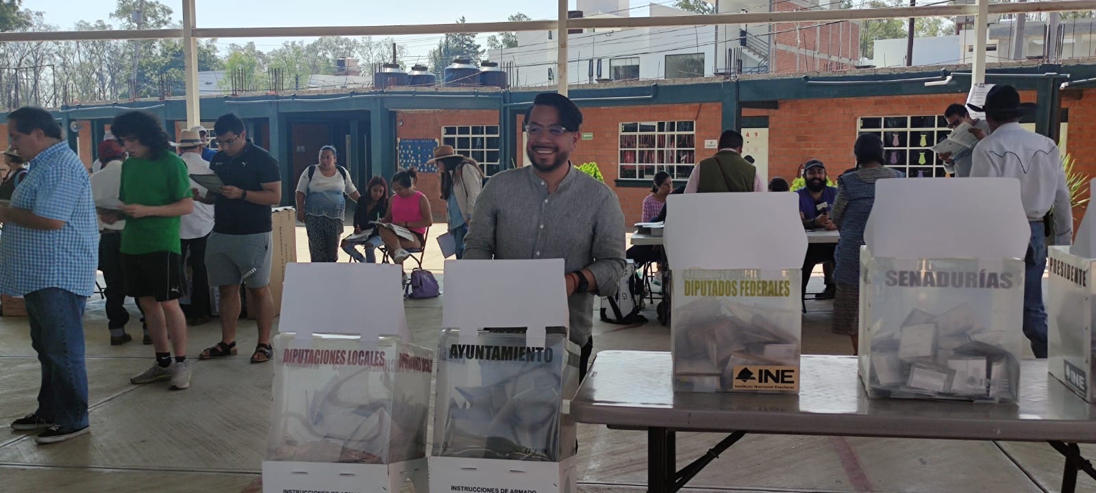 Daniel Serrano Palacios, candidato de la coalición “Sigamos Haciendo Historia en el Estado de México” a la presidencia municipal de Cuautitlán Izcalli, acudió la mañana de este domingo a emitir su voto en el colegio Liceo Bretaña, ubicado en Lago de Guadalupe.