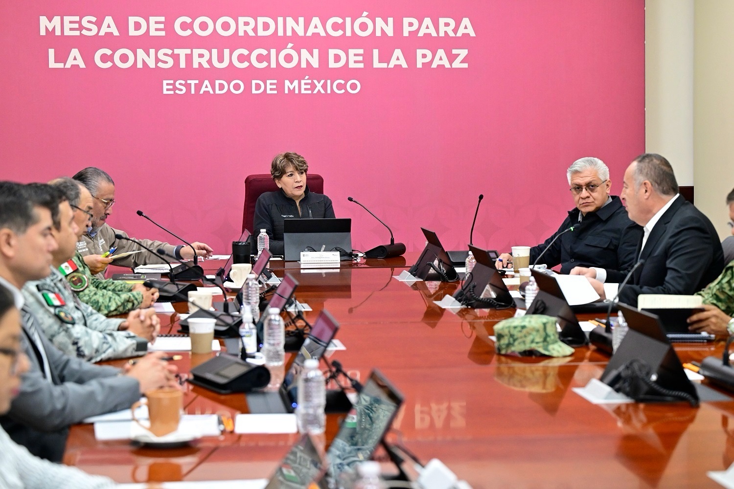 En la Mesa de Coordinación participaron Horacio Duarte Olivares, Secretario General de Gobierno; Teniente Coronel Cristóbal Castañeda Camarillo, Secretario de Seguridad estatal; José Luis Cervantes Martínez, Fiscal General de Justicia del Estado de México.