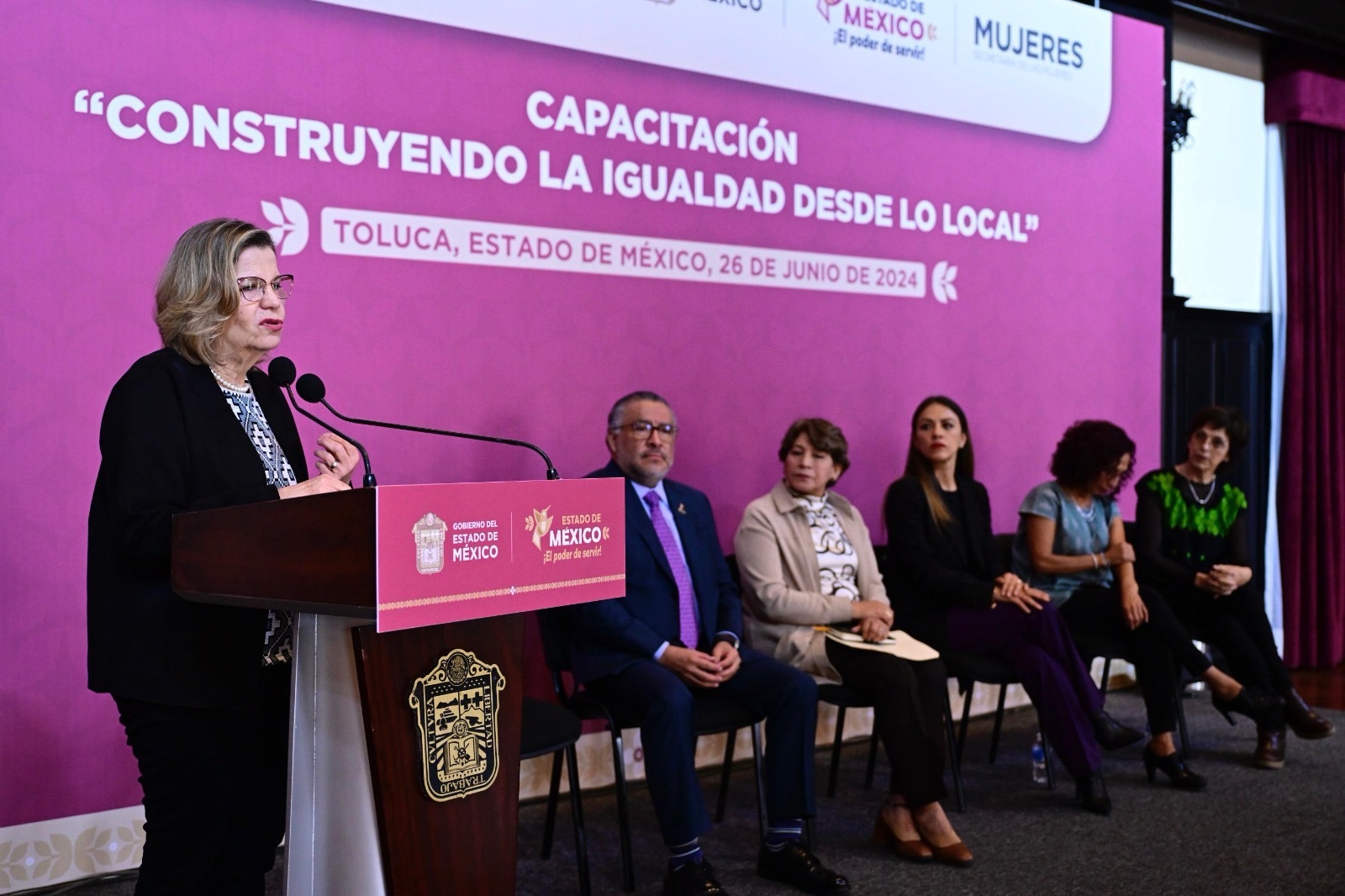 “Junto a integrantes del Gabinete del Gobierno del Estado de México, participamos en la capacitación “Construyendo la igualdad desde lo local”, impartida por el personal del @inmujeres. Con #ElPoderDeServir trabajamos por el bienestar de las mujeres mexiquenses”, informó la Gobernadora Delfina Gómez en sus redes sociales.