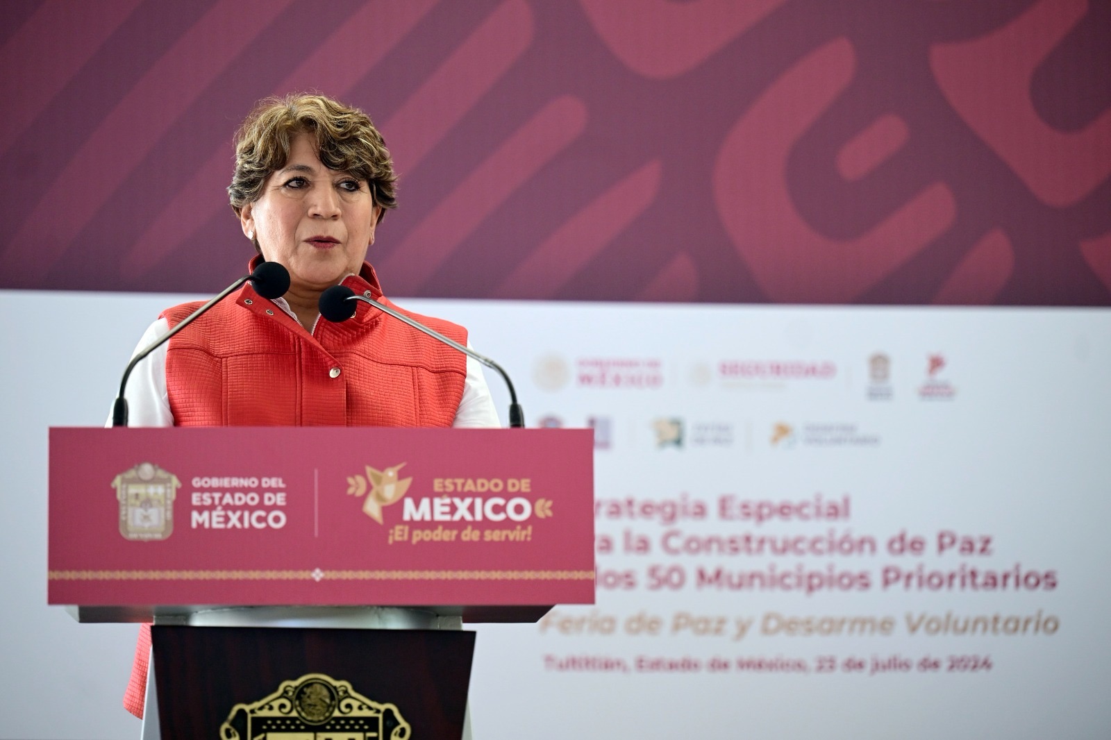 TULTITLÁN, Estado de México. – La Gobernadora Delfina Gómez Álvarez hizo un llamado a los mexiquenses a participar en la Feria de Paz y Desarme Voluntario que se lleva a cabo en el municipio de Tultitlán y cuyo objetivo es disminuir los riesgos y garantizar la paz y la seguridad de las familias en el Estado de México.