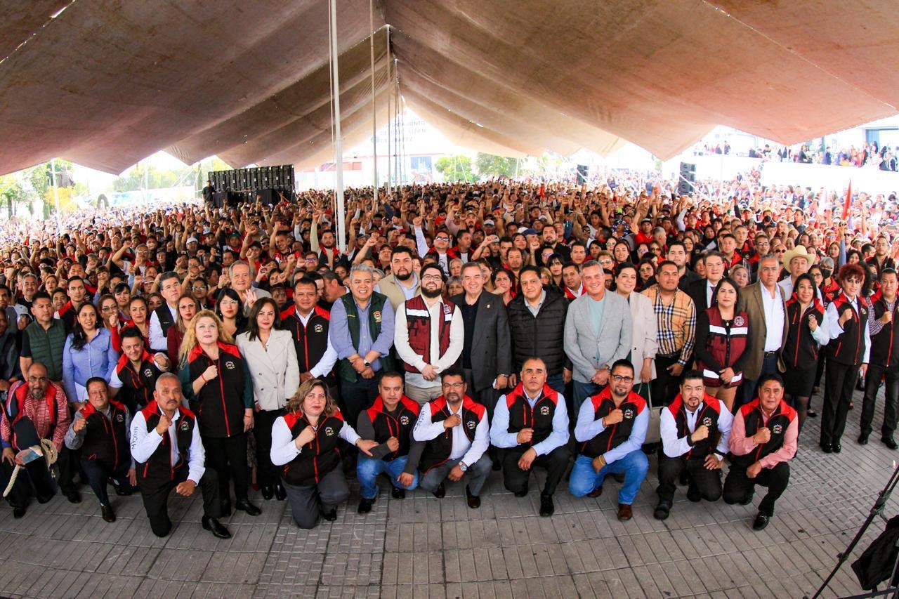 En la explanada del palacio municipal, abarrotada por trabajadores del SUTEyM, el presidente municipal, Isaac Montoya Márquez, afirmó, se suman esfuerzos y voluntades para conseguir la prosperidad de Naucalpan, y pidió trabajar juntos para superar los desafíos y retos que presenta el municipio.