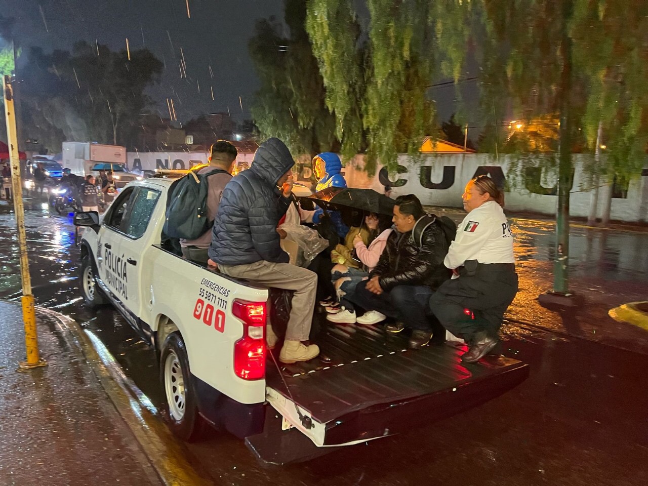 En un ejemplo de la pronta respuesta, oficiales asistieron a peatones en la Av. Jorge Jiménez Cantú, cerca de la Preparatoria 10, para evacuar el área debido a las anegaciones. Además, en una acción conjunta con la Coordinación de Protección Civil y Bomberos, se logró el rescate de dos personas, de 24 y 65 años, quienes quedaron atrapadas en sus vehículos por la acumulación de agua bajo el puente de Av. Constitución, en la autopista México-Querétaro.
