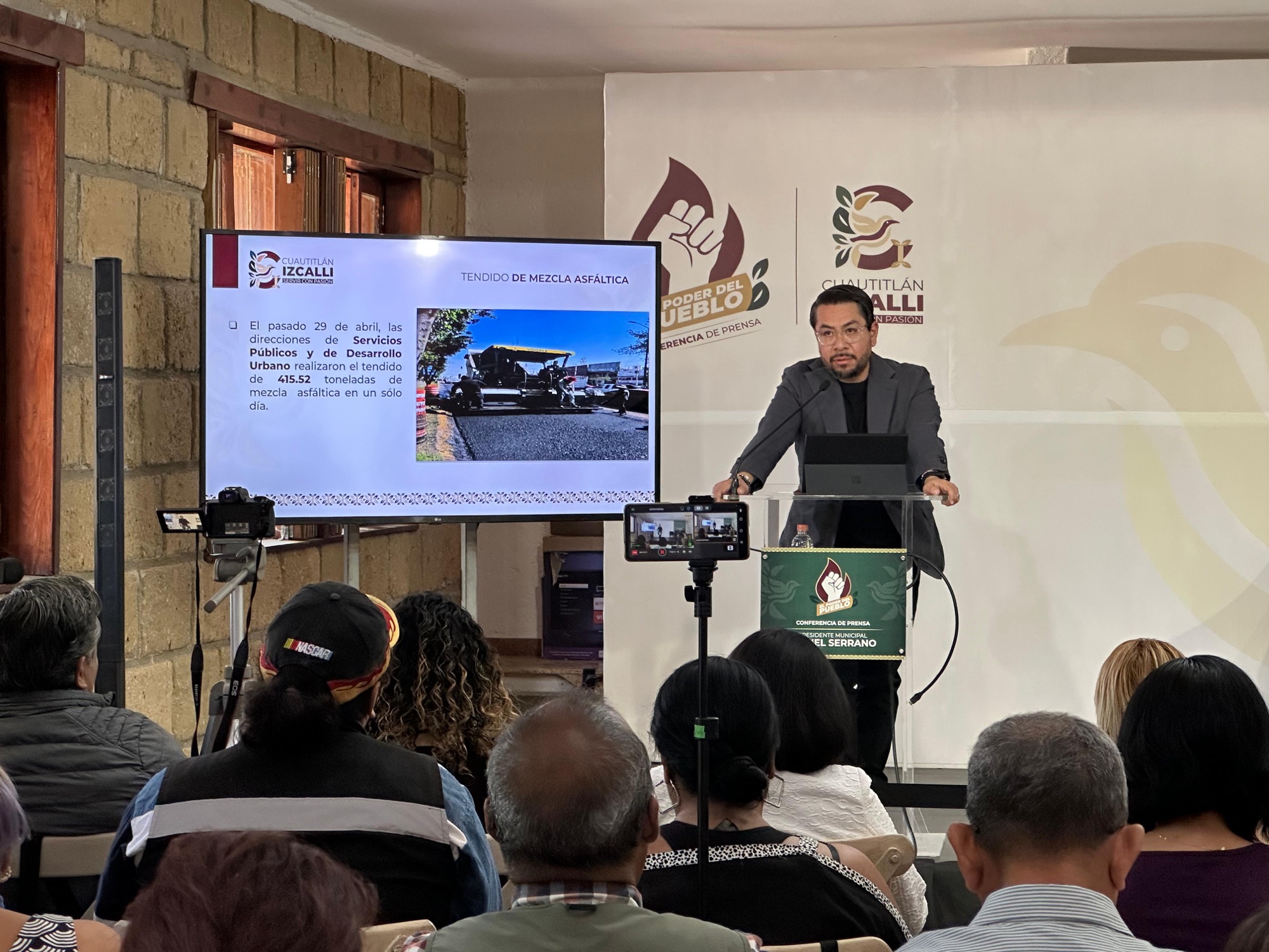 Asimismo, durante la conferencia –encabezada por el Presidente Municipal, Daniel Serrano–, se dio a conocer el récord de tendido de mezcla asfáltica en un solo día: