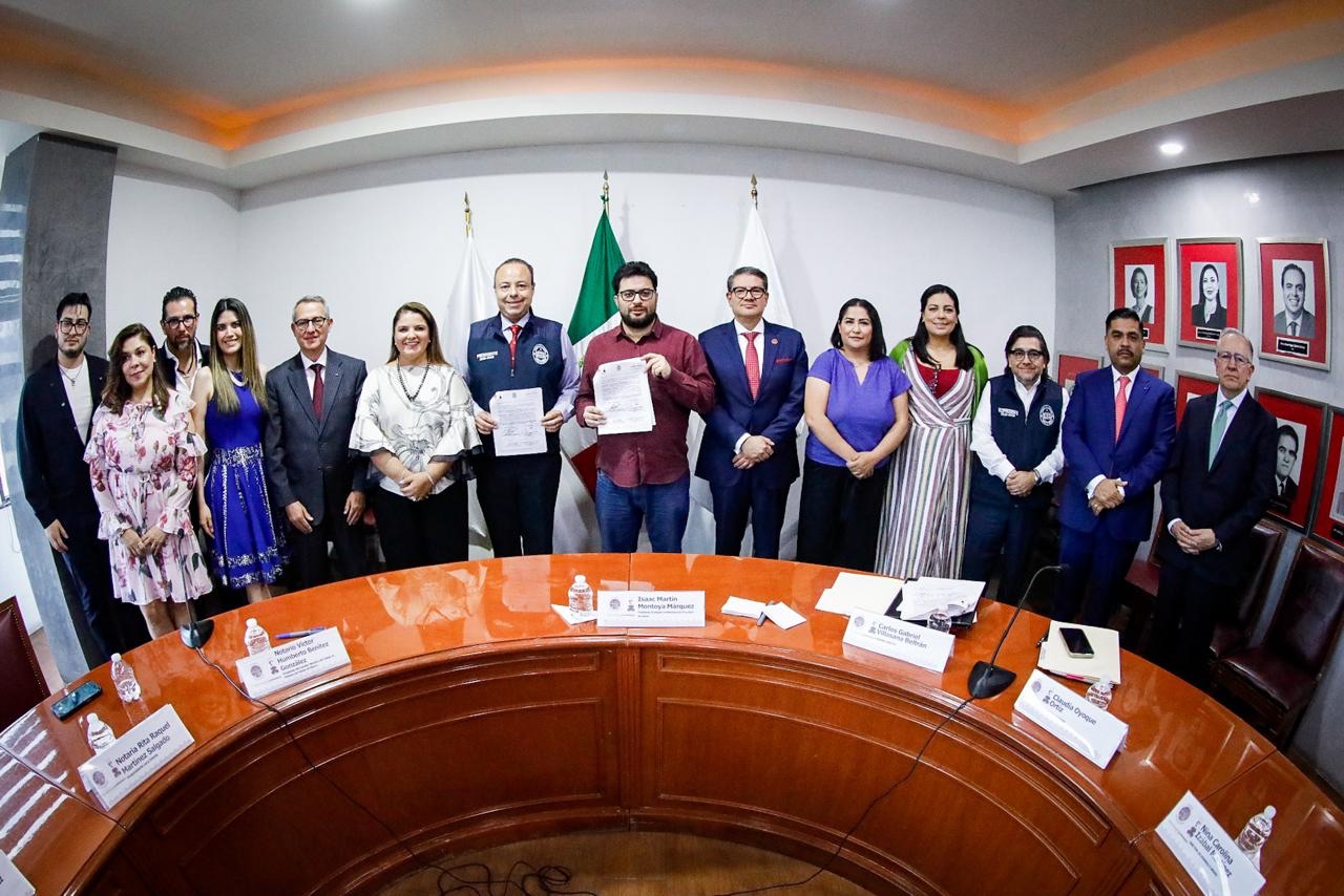 Naucalpan es el primer municipio en la entidad que firma un convenio de colaboración con el Colegio de Notarios del Estado de México, lo que permitirá implementar una plataforma tecnológica que facilitará, modernizará y brindará seguridad jurídica a las y los naucalpenses en programas de regularización patrimonial. Así damos un paso firme hacia el municipio que queremos, señaló el presidente municipal, Isaac Montoya Márquez.