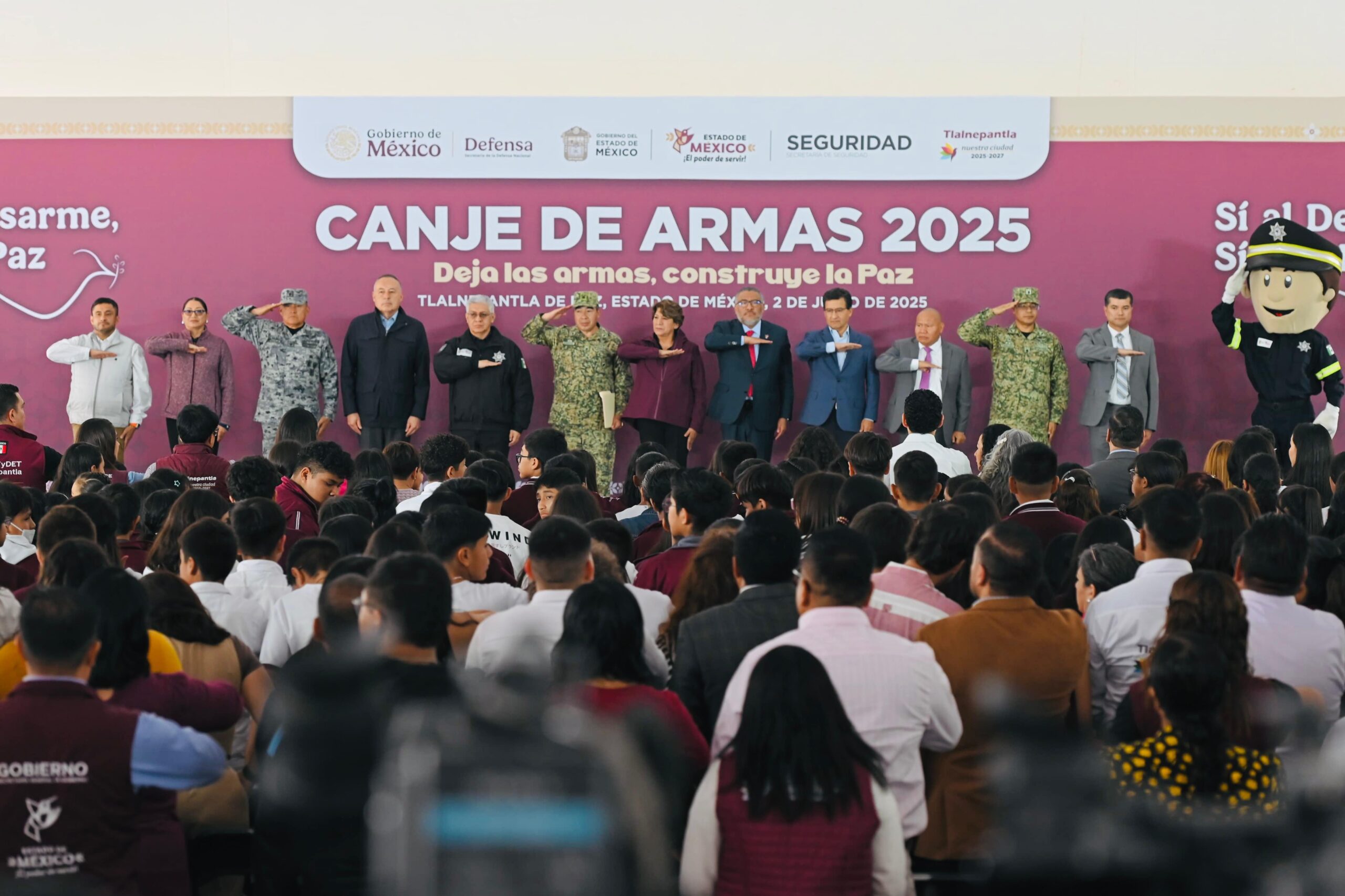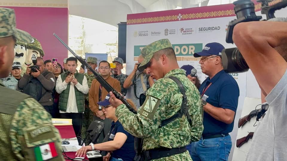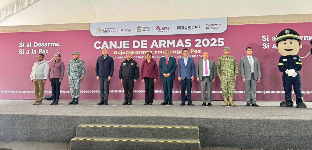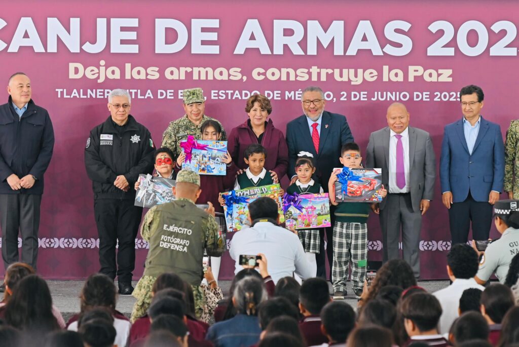La Gobernadora Delfina Gómez, acompañada de Raciel Pérez, Presidente Municipal de Tlalnepantla; en el arranque del programa •Canje de Armas 2025• en TlalnepantlaLa mandataria intercambió juguetes bélicos por juegos didácticos.“Si al desarme, Si a La Paz” iniciativa que estará vigente del 2 de junio al 27 de septiembre El objetivo es retirar armas de los hogares y comunidades a fin de evitar ambientes de violencia y prevenir accidentes La entrega de armas para su destrucción es voluntaria, anónima y pacífica a cambio de un monto económico