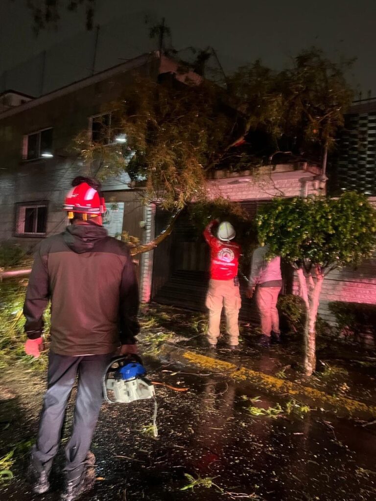 Este martes, la Dirección de Sustentabilidad Ambiental continúa con el retiro de árboles caídos por el reblandecimiento del suelo y realiza inspecciones preventivas para derribar ejemplares en riesgo, además de recolectar residuos verdes. Por su parte, la Comisaría General de Proximidad y Seguridad Ciudadana auxilió en 27 puntos afectados, como Jardines de Santa Mónica, San Lucas Tepetlacalco, La Loma, Valle Dorado, entre otros.