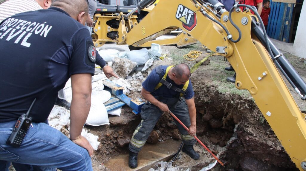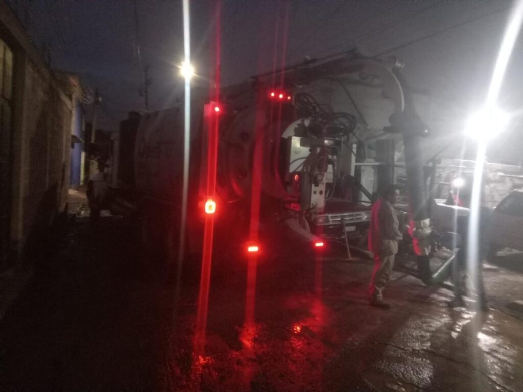 Operagua también atendió reportes de casas afectadas por ingreso de agua en las calles Jade, Galeana y Topacio, utilizando equipos de hidrosucción para limpiar fosas sépticas, cisternas y el interior de algunas viviendas.
