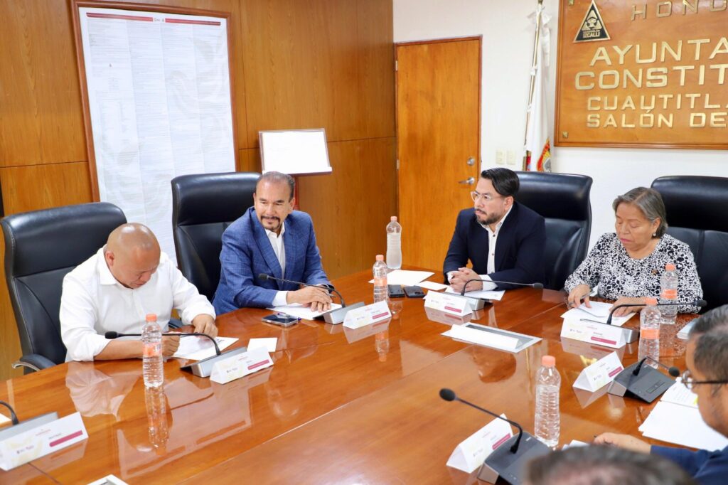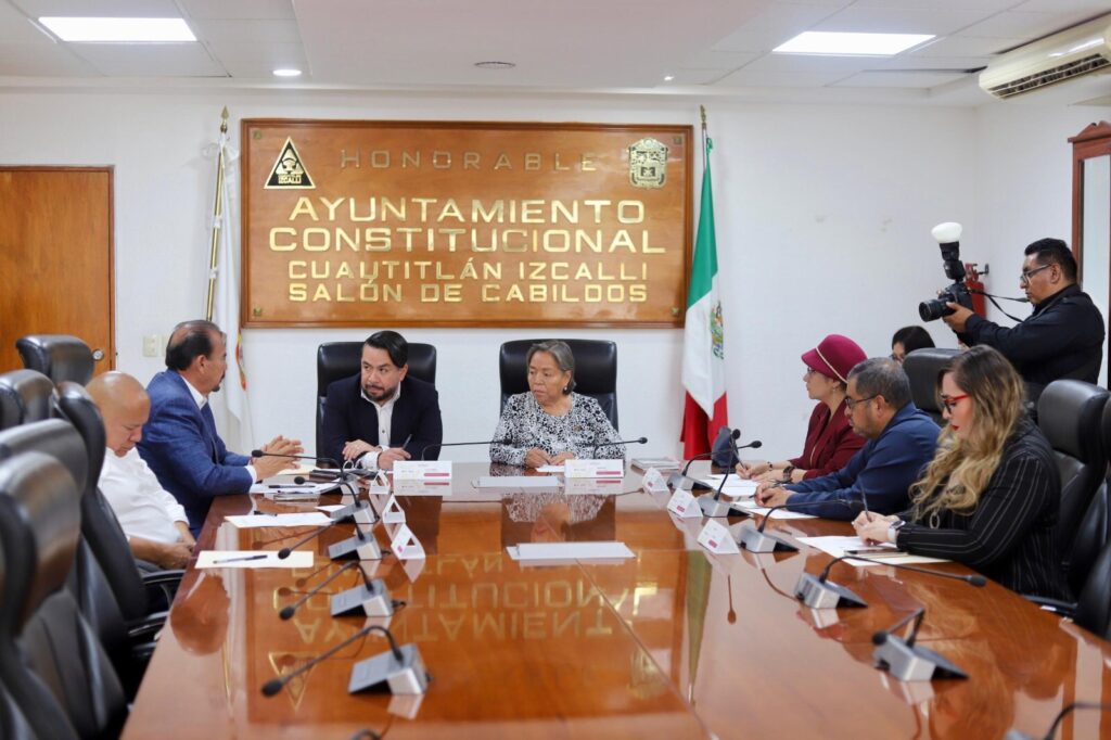 El presidente municipal de Cuautitlán Izcalli, Daniel Serrano, encabezó una mesa de trabajo con la oficial mayor del Estado de México, Trinidad Franco Arpero, y los alcaldes de Tlalnepantla, Raciel Pérez Cruz, y Atizapán, Pedro Rodríguez, para fortalecer la coordinación interinstitucional ante la temporada de lluvias y garantizar la seguridad de la ciudadanía. La reunión se llevó a cabo en el Salón de Cabildos de Cuautitlán Izcalli.