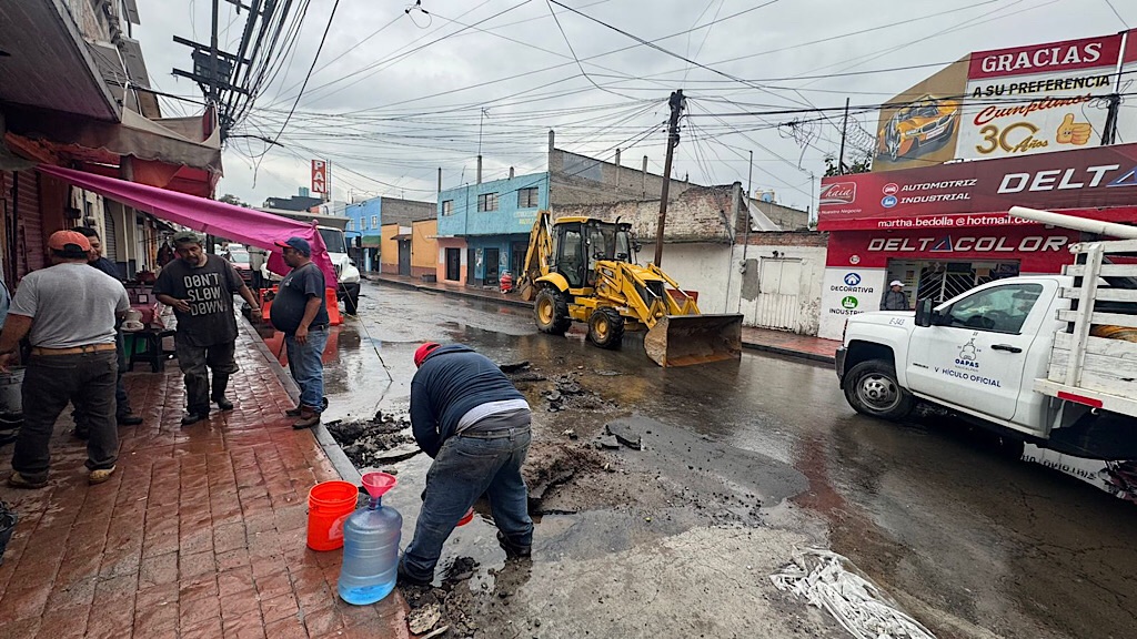 Durante las labores de reparación, los trabajadores identificaron daños en un tubo de agua potable de 8 pulgadas y en una tubería de drenaje. El tubo de agua potable ya fue reparado, y OAPAS continúa trabajando en la reparación del sistema de drenaje para restablecer el servicio en la zona afectada.