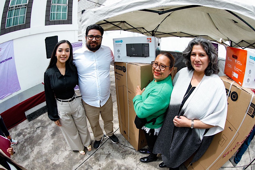 El Presidente Municipal, Isaac Montoya Márquez, en colaboración con el Sistema DIF Municipal, entregó 12 kits de electrodomésticos a igual número de familias afectadas por la demolición controlada de un edificio en la colonia Ampliación Benito Juárez, ubicado en la calle Ampliación Sierra Madre del Norte, que registra un avance del 50%.