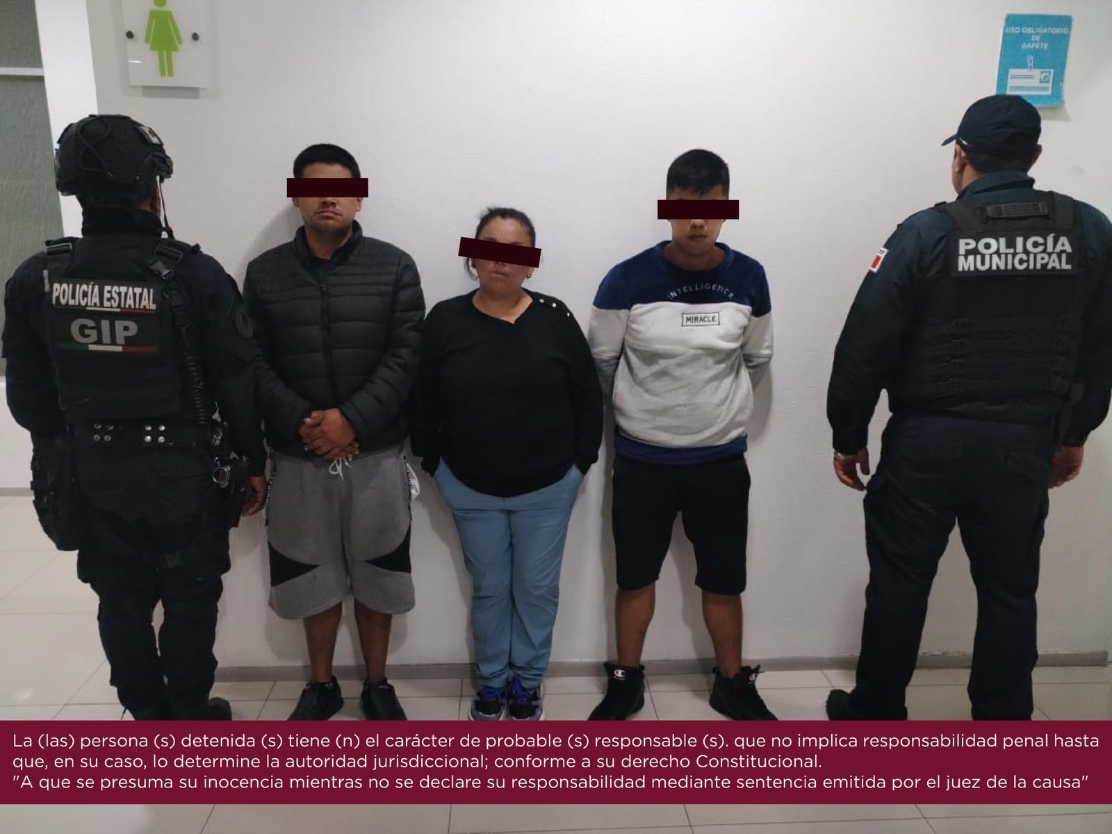 En un operativo conjunto de la Estrategia Operativa Oriente, derivado de la Mesa de Coordinación para la Construcción de la Paz, elementos de la Guardia Nacional, Policía Estatal y Guardia Municipal detuvieron en la colonia Valle Dorado a dos hombres y una mujer presuntamente vinculados al robo con violencia de vehículos y motocicletas, por el delito de cohecho.