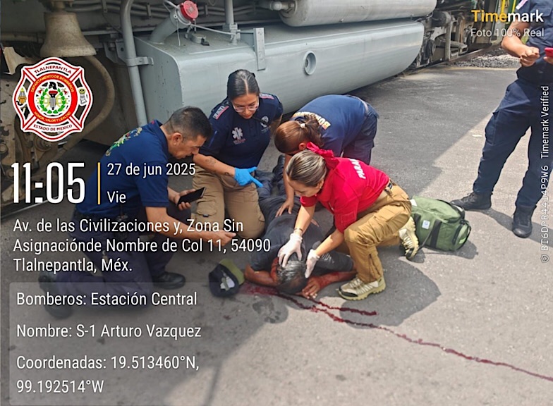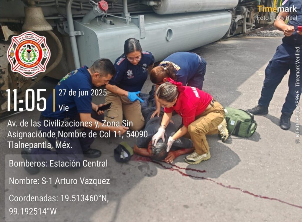 Elementos de la Comisaría General de Proximidad y Seguridad Ciudadana de Tlalnepantla, en colaboración con la Dirección Municipal de Protección Civil y Gestión Integral de Riesgos, brindaron auxilio inmediato a José Luis N., de 74 años, quien fue embestido por una locomotora en el pueblo San Pablo Xalpa, a la altura de Los Rosarios.