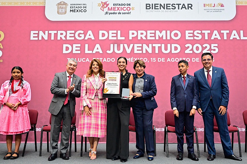 La Gobernadora Delfina Gómez Álvarez encabezó la entrega del Premio Estatal de la Juventud 2025, galardonando a 30 jóvenes mexiquenses por su trayectoria, compromiso social y aportaciones al desarrollo de la entidad. “Nuestro compromiso es claro: que las y los jóvenes tengan las mismas oportunidades para que logren sus metas, alcancen sus ideales y cumplan sus objetivos. Todas y todos merecen ser exitosos y triunfadores”, afirmó la Mandataria.
