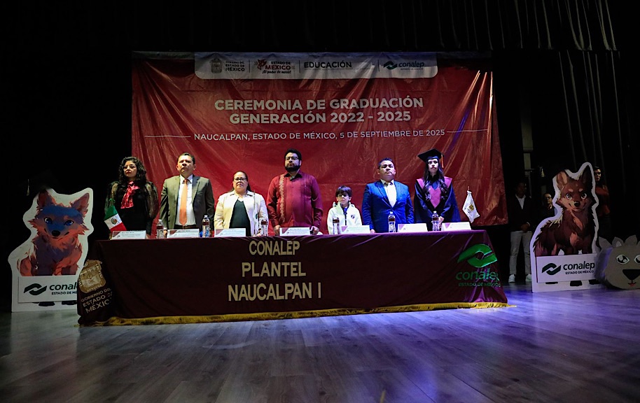 Montoya destacó la trayectoria del Conalep Naucalpan I, fundado en 1985 con 553 estudiantes y que hoy atiende a 1,685, formando técnicos de alta competencia. En presencia de la Presidenta Honoraria del Sistema DIF Municipal, la Subdirectora Académica del Conalep Estado de México, Silvia Aguilar Martínez, y el director general de Educación Media Superior, Simón Mondragón Bernal, el edil motivó a los graduados a contribuir al desarrollo de sus familias y comunidad, invitándolos a sumarse a la Universidad Rosario Castellanos, que pronto iniciará clases.