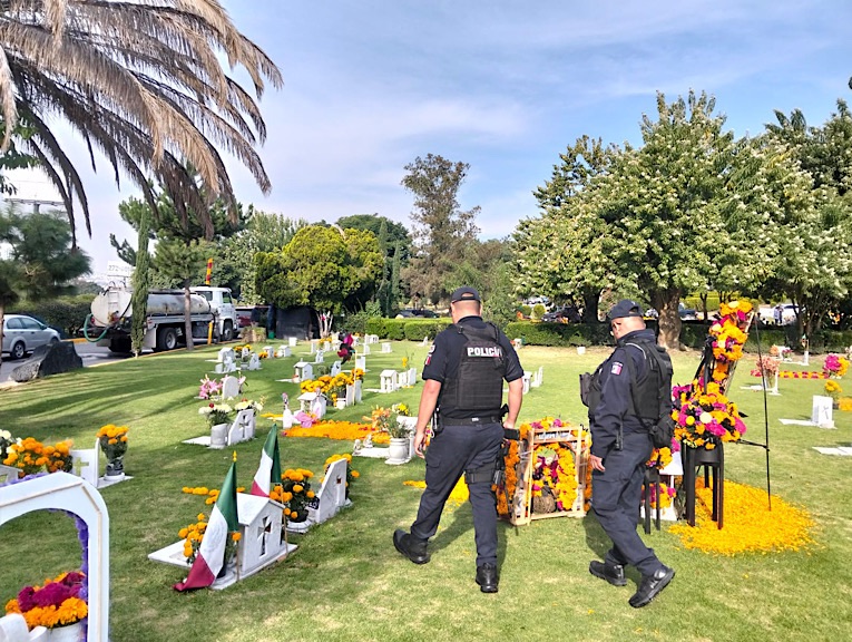 Este domingo 2 de noviembre, la Comisaría General de Proximidad y Seguridad Ciudadana desplegó un operativo especial en panteones de comunidades como Santa María Tlayacampa, Jorge Jiménez Cantú, Lázaro Cárdenas, San Juan Ixhuatepec, San Andrés Atenco, San Jerónimo, Xocoyahualco y San Pablo Xalapa, entre otros. El despliegue busca garantizar la seguridad de las familias durante sus visitas a los difuntos, reportándose hasta el momento un desarrollo ordenado y tranquilo, sin incidentes.