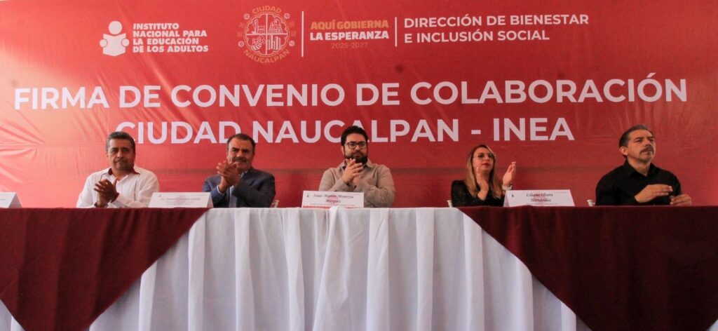 En el exterior de la Escuela Primaria Maestro Ignacio Ramírez, ubicada en la Colonia Nueva San Rafael, se firmó el convenio de colaboración entre el Instituto Nacional para la Educación de los Adultos (INEA) y el Gobierno de Naucalpan. El alcalde Isaac Montoya Márquez destacó que este acto representa un paso importante en favor de la educación y un punto de partida para un esfuerzo conjunto entre los tres niveles de gobierno —federal, estatal y municipal— con el objetivo de lograr un Naucalpan libre de analfabetismo y garantizar un mejor futuro.