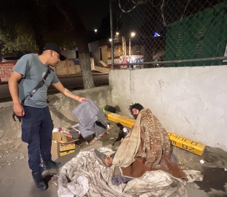 Durante los operativos realizados en las colonias Tlalnepantla Centro, San Javier y La Romana, cuatro personas en situación de calle recibieron apoyos directamente en vía pública y agradecieron la ayuda para enfrentar las frías noches.