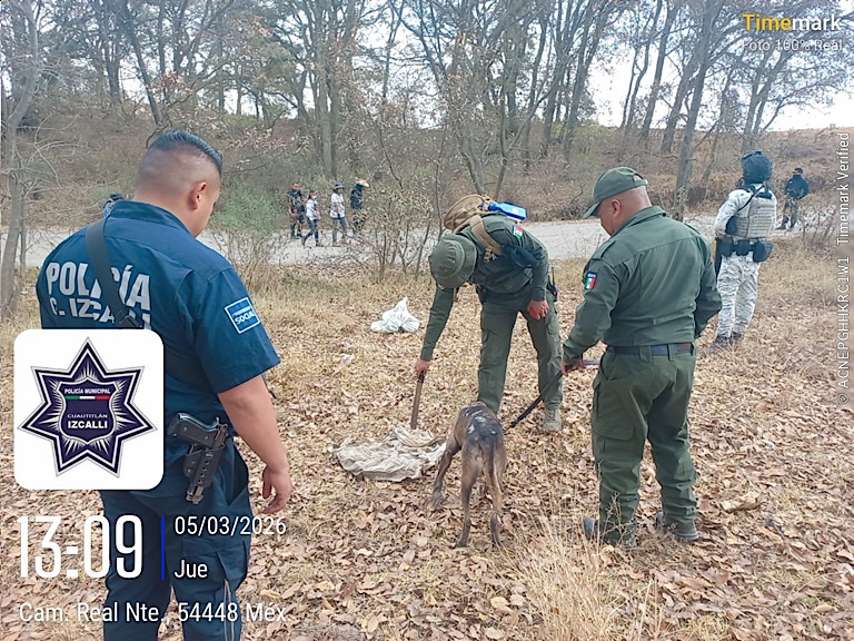 En un despliegue coordinado con dependencias locales, estatales y federales, se llevó a cabo supervisión aérea mediante dron en un amplio espacio inexplorado, donde se marcaron varios puntos de interés. Posteriormente, elementos realizaron un extenso recorrido a pie, durante el cual se localizaron restos óseos que, de manera preliminar, aparentan corresponder a algún animal. Estos serán sometidos a análisis pericial por las autoridades correspondientes para determinar su origen y relevancia.