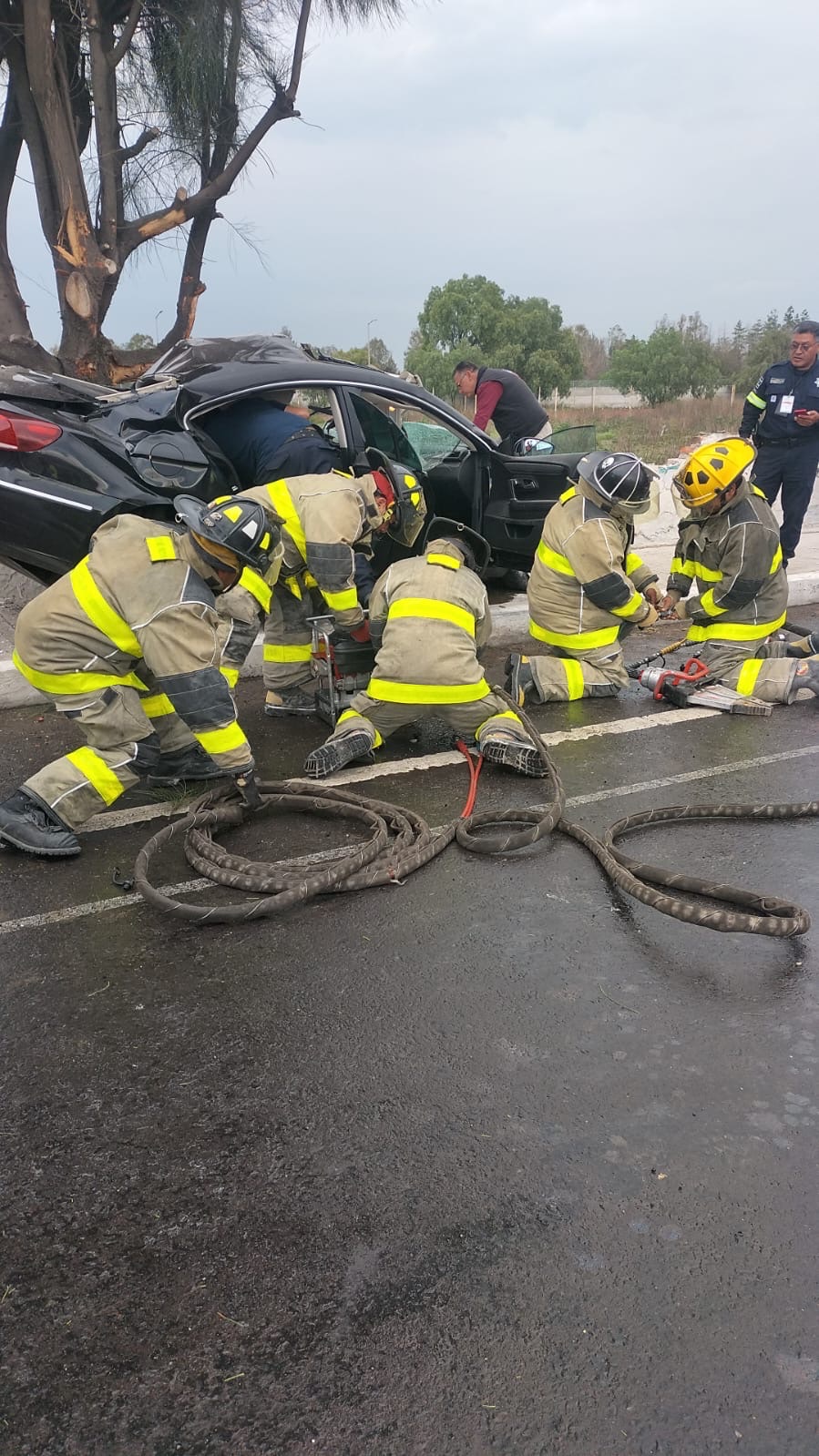 Elementos del Cuerpo de Protección Civil y Bomberos de Tecámac rescataron de a una pareja que quedaron prensados tras aparatoso choque a la altura del kilómetro 44 de la carretera federal México-Pachu...