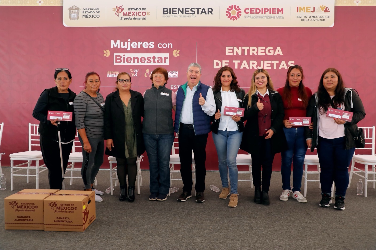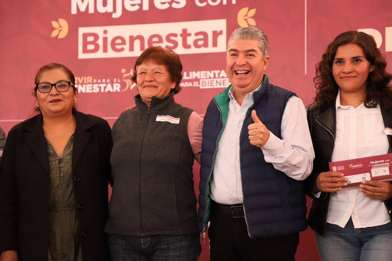El secretario de Bienestar del Gobierno del Estado de México, Juan Carlos González, y la presidenta municipal, Rocío Miguel Hernández, entregaron tarjetas del Programa Mujeres con Bienestar, que al ci...