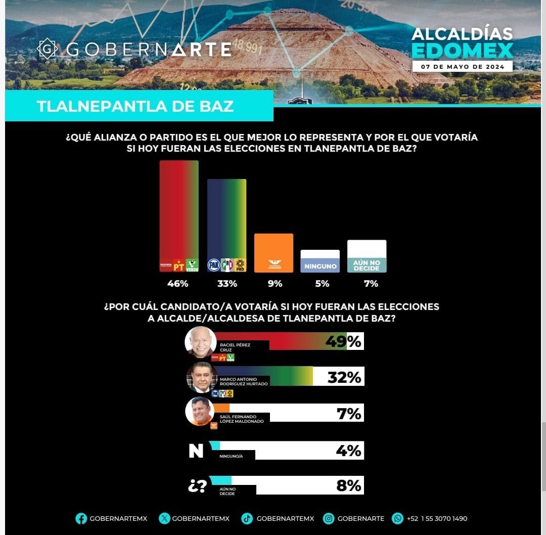 Tlalnepantla de Baz, Estado de México, 07 de mayo de 2024. La encuestadora Gobernarte señala que la alianza partidista de Morena, PT y Verde es la que mejor representa a la ciudadanía y por la cual su...