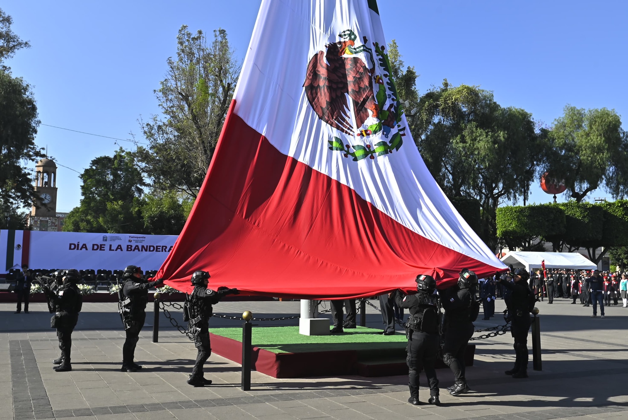 En el marco del Día de la Bandera, el Presidente Municipal de Naucalpan, Isaac Montoya Márquez, encabezó la ceremonia de izamiento del lábaro patrio en la Explanada del Palacio Municipal, con la parti...